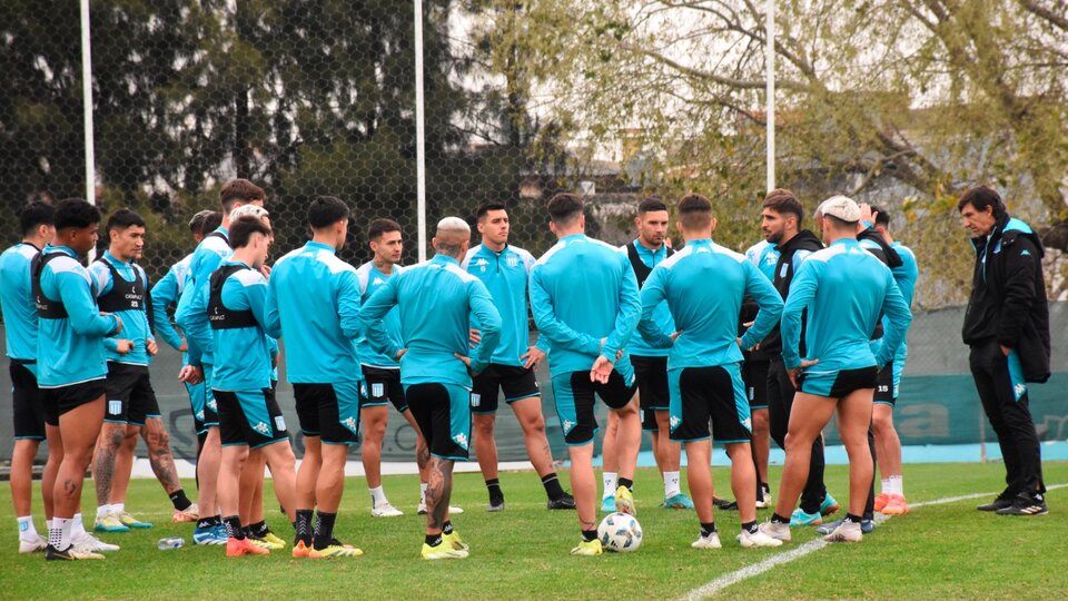 La formación de Racing: Cambeses o Arias; Sigali, Sosa, Quirós; Martirena, Barrios o B. Rodríguez, Almendra, G. Rojas; Carbonero o Quintero, A. Martínez, Salas.