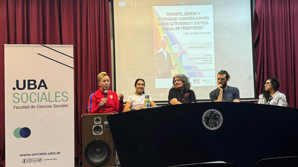 En este contexto y en el marco del mes del orgullo, esta universidad organizó una charla en conjunto con la Embajada de Estados Unidos en Argentina para exponer esta problemática y entender qué caminos se pueden tomar para contribuir a su evolución. Joanna Lohman, exfutbolista de la Selección de Estados Unidos, activista y referente del colectivo LGBTQI+ fue la invitada internacional de un panel integrado por Mónica Santino, directora técnica en La Nuestra fútbol feminista; Martín Álvarez Litke, antropólogo especializado en género y deporte, y Nemesia Hijós, antropóloga y docente, quien moderó la charla. Lohman viaja por todo el mundo como diplomática para compartir su mensaje y abogar por la equidad de género.