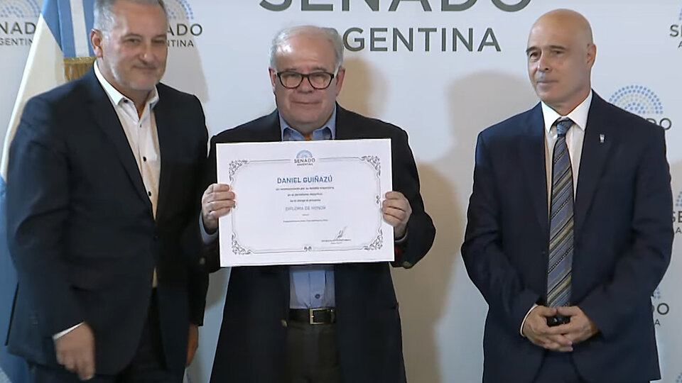 Semana de doblete para Deportes de Página/12. Daniel Guiñazú, periodista de la sección, fue distinguido este lunes por el Senado de la Nación con un diploma de honor por su destacada trayectoria como periodista deportivo; mientras que Gustavo Veiga, firma icónica de la sección y el diario, será premiado este martes en Brasil por el Movimiento de Justicia y Derechos Humanos (MJDH) de ese país.