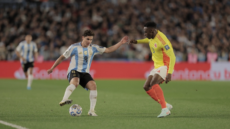 Luis Díaz marcó a los 23 minutos el gol que abrió el partido por las Eliminatorias y Thiago Almada convirtió el empate para la Scaloneta, a los 80.